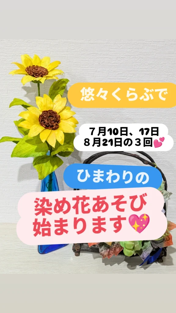 2025年夏の悠々くらぶは・・・染め花あそび 🌻🌻🌻🌻 を作ります💕 開催日時 (全3回で仕上げます)①7月10日(木)…