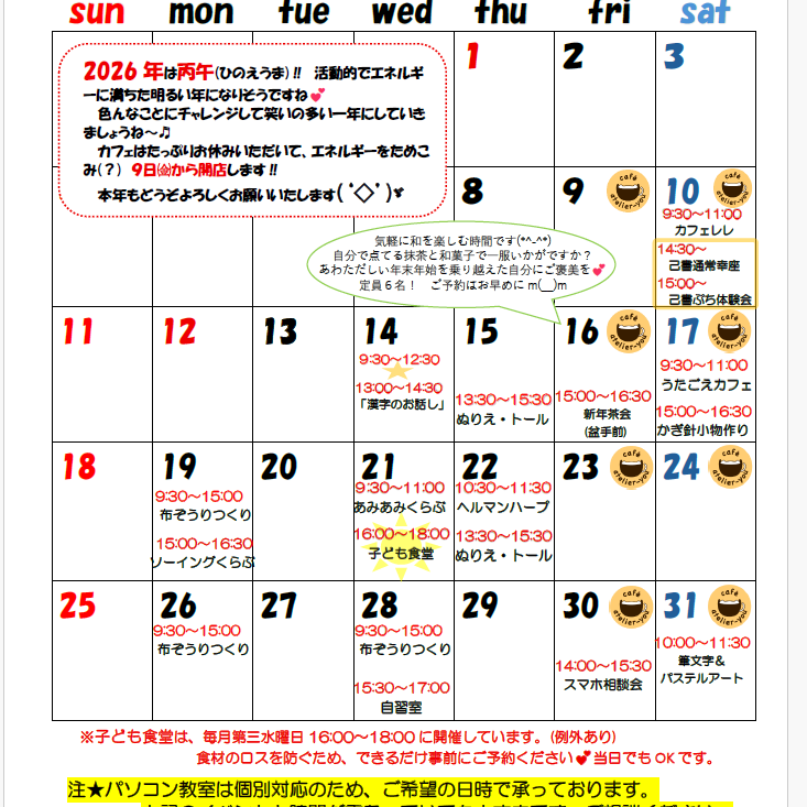 2026年1月のカレンダーを掲載しました。(2026年1月5日更新)(2026年1月 6日更新) [wpdm_package id='1340']